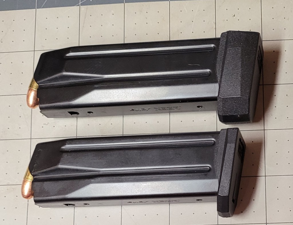 I’m not sure what he is talking about the extended mag being 17 round – both of mine are 15 round mags . . .