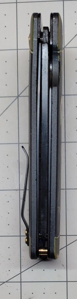 At 9 inches open it’s a decent size – about 3 1/2 inches sharpened on the cutting blade and 3 inches on the serrated give you plenty to work with – and it’s 440 steel . . .
