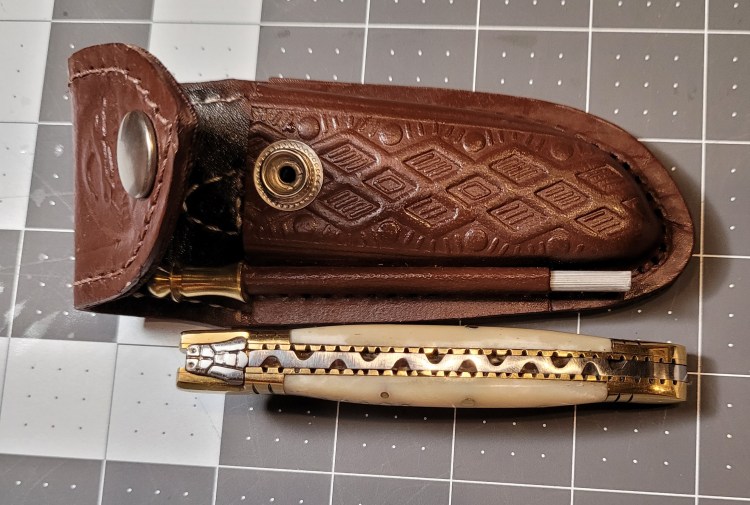I had one of these years ago – about 30 years or more actually – the little knife decided to play hide and seek – it was a real good hiding place because I never found it – LOL – life went on and I had forgotten about it completely when I happened on this one in a pawn shop – 6 or 8 bucks later and I was a happy camper . . .