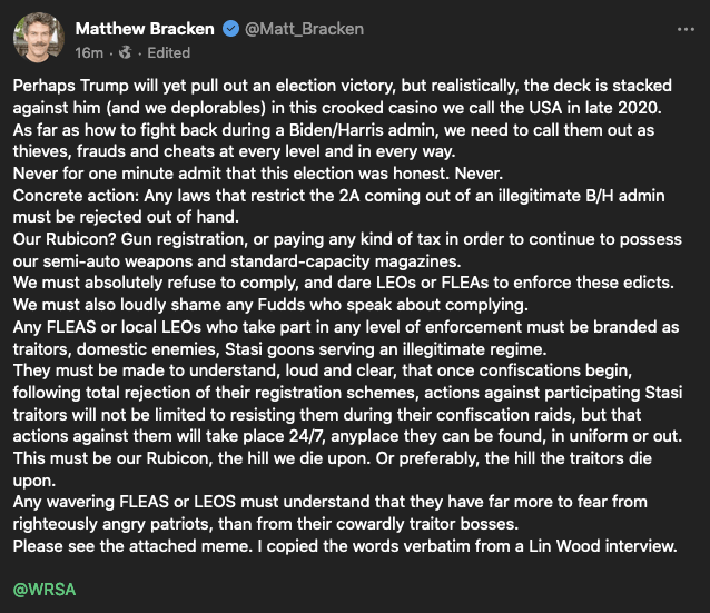 I pretty much agree with this guy. Let’s take New York State as an example – SAFE Act passed – must register my “assault weapon” – what ever the fuck the crooks in charge determine “that ” to be – an estimated 5% compliance rate – after watching what the criminals in charge did and are doing to you folks – I have a question – If you are not willing to use them now – when exactly are you going to do something that even smells American?? When the aliens come down in their space ships and start attacking??