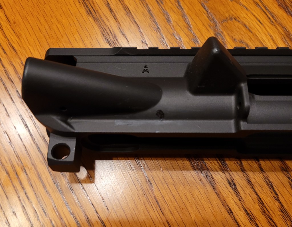 It’s the little black dot under the front edge of the forward assist – I can live with it – LOL!