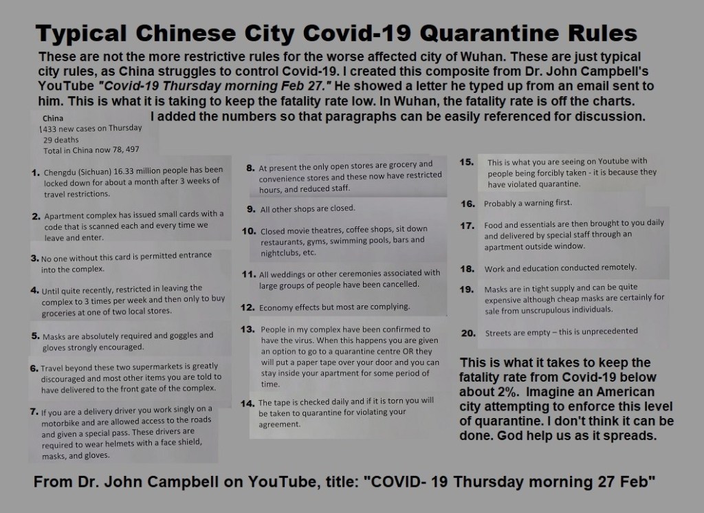 (2) A brilliant blog on the realities of Coronavirus by Dr. Paul Sax, a Harvard Medical School classmate of mine (now Professor at our mutual alma mater), who serves as clinical director of the Division of Infectious Diseases at Brigham and Women’s Hospital. His blog is brilliant. Read it. Share it.