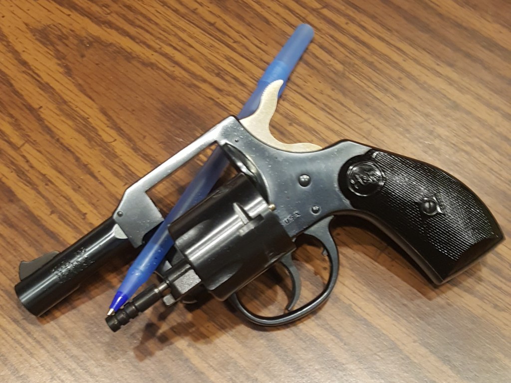 Several lifetimes ago I had one just like this one – same prefix on the serial number even – how long ago you ask ? – I bought it at an OTASCO store on main street in a small southern town – and they had a big display cabinet full of H&R “stuff” – good times !
