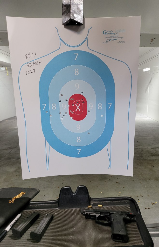 Having previously shot it I was pretty much dialed in as far as grip – sight picture – the only difference was more “target” information – a crisper picture is how I would describe it – and did I mention it was an absolute joy to shoot in .32acp?
